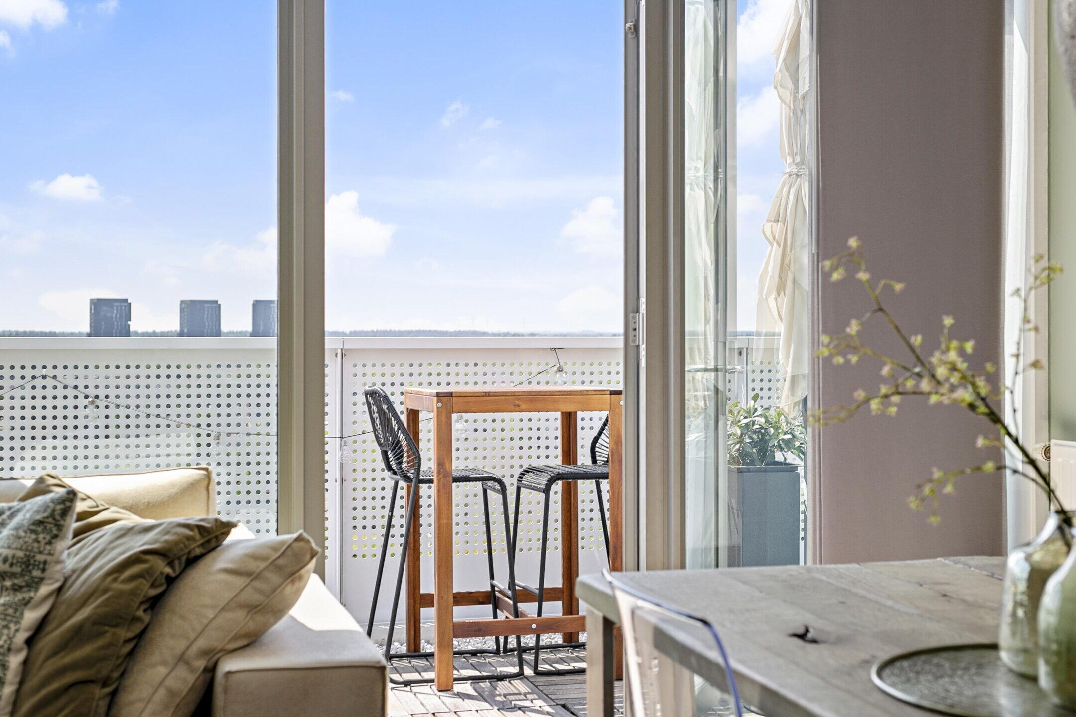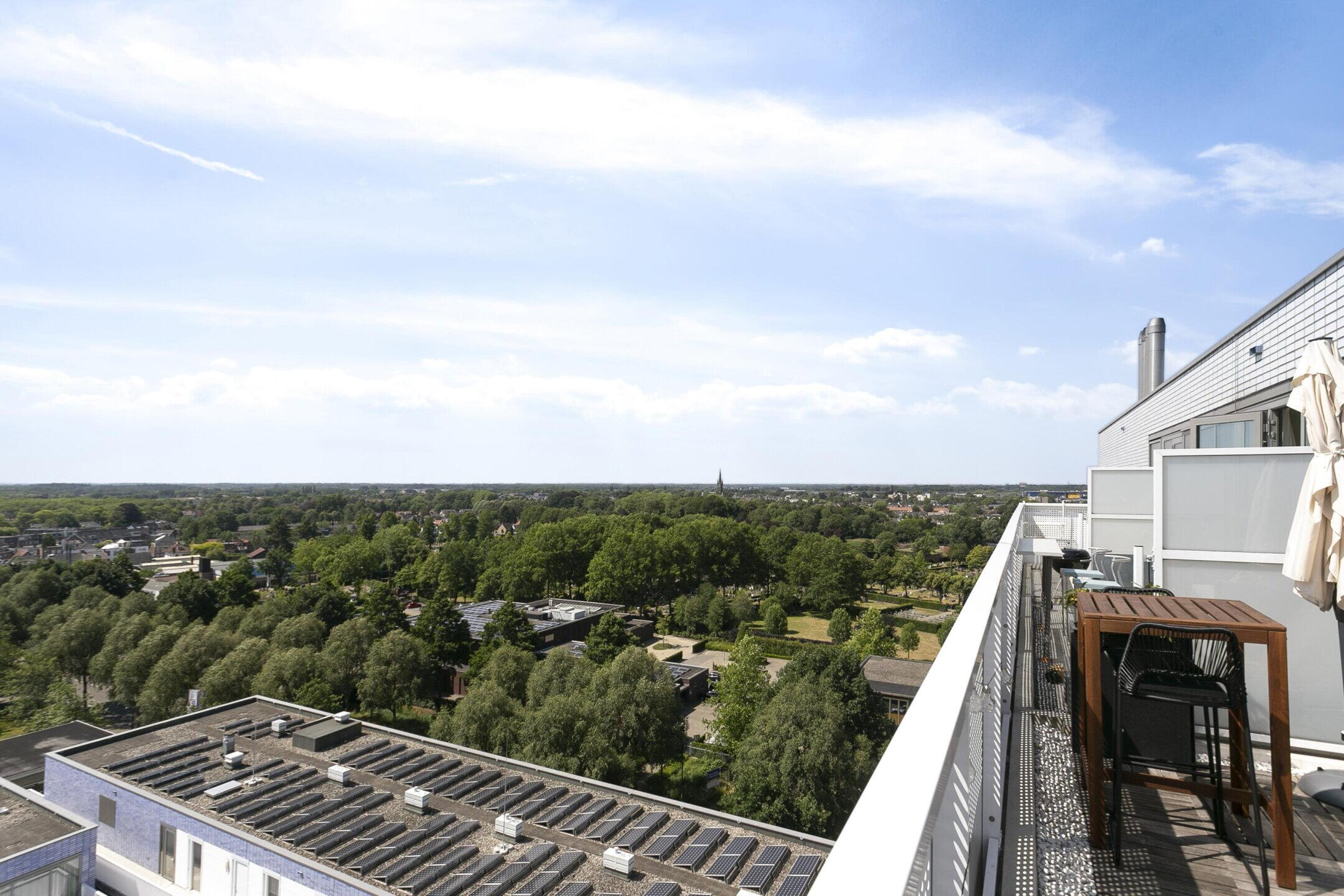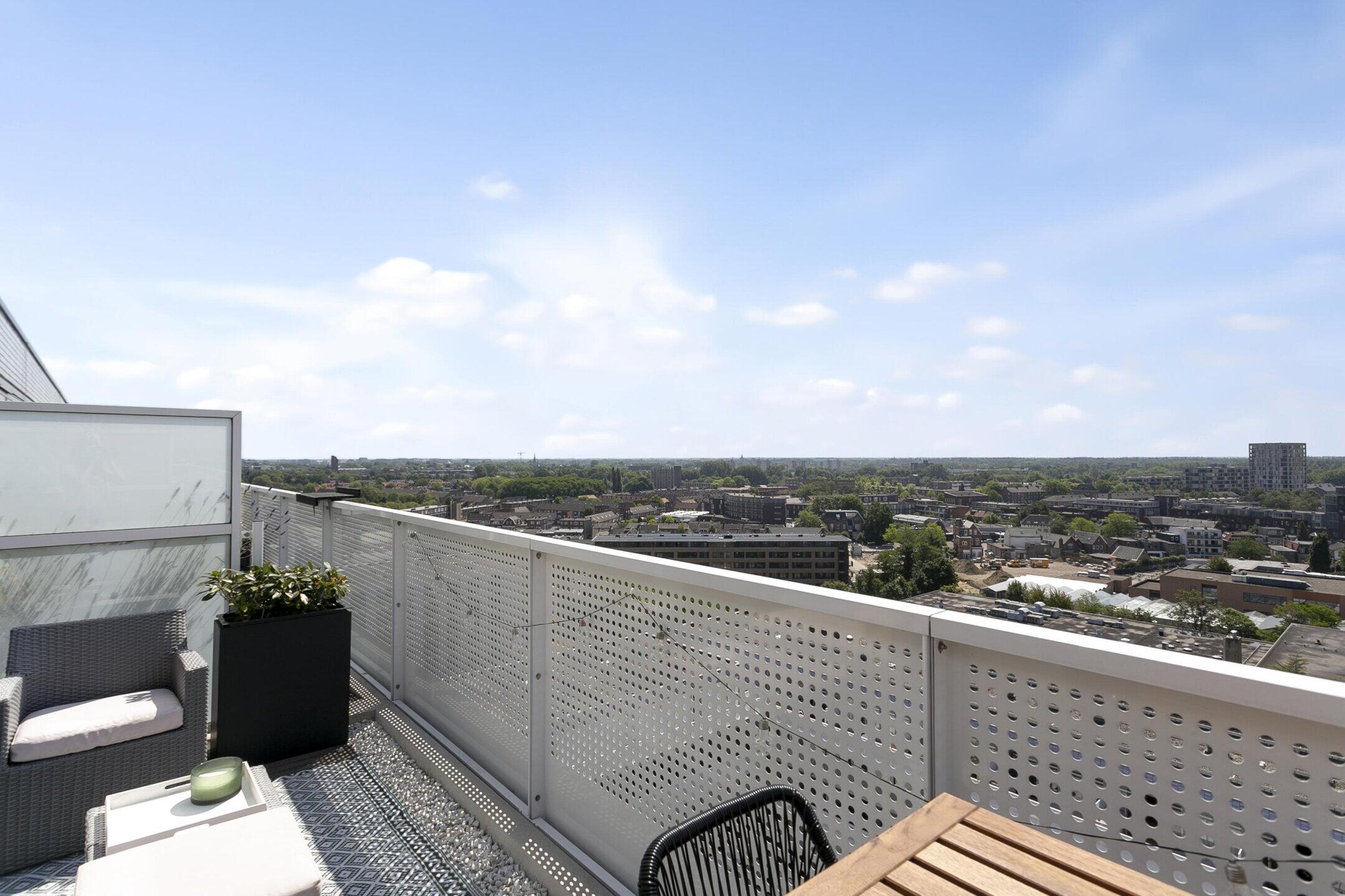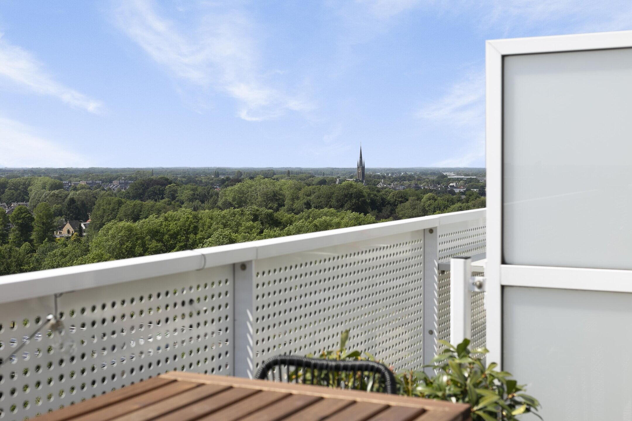 Het royale balkon biedt de hele dag zon, geen enkele inkijk en vanaf deze hoogte een fenomenaal uitzicht over Breda en de wijde omgeving.